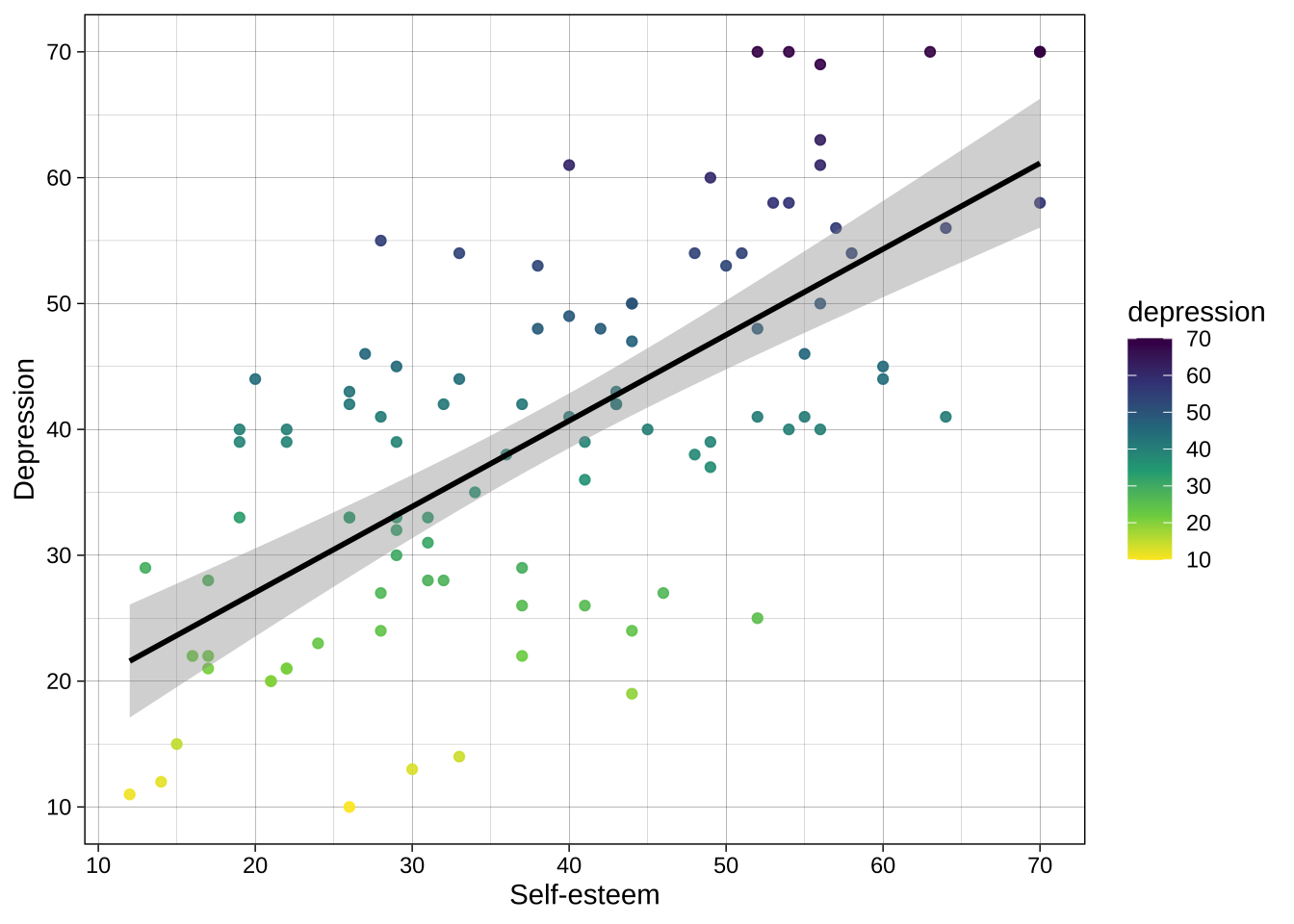 p <- ggplot(data = dat_likert, aes(x = self_esteem, y = depression))