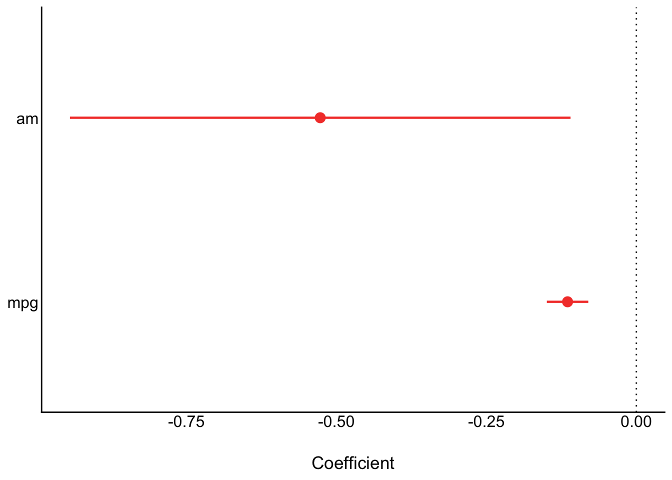 | 2 | am | -0.53 | 0.95 | -0.94 | -0.11 | -2.58 | 29 | p = 0.015 | -0.27 | -0.48 | -0.06 | NA |